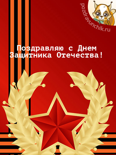 [URL=http://www.pozdravunchik.ru/pozdravleniya/23fevralya/page/3/cards.html][IMG]https://www.pozdravunchik.ru/wp-content/uploads/2014/11/pozdravlyaju-s-dnem-zashitnika-otechestva_21.jpg[/IMG][/URL]