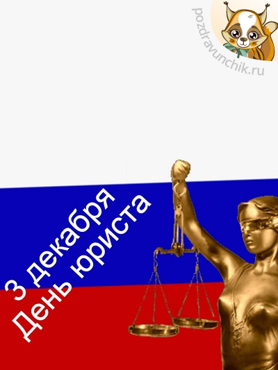 Профессию юриста уважают в обществе. Ведь это престижная, сложная и очень ответственная работа – быть на защите законной справедливости. Сотрудники отрасли юриспруденции ответственны за исполнение и утверждение законов. Именно от юристов зависит существование уклада государства. Но и у такой «серьезной» профессии имеется теперь свой собственный праздник. День юриста относительно «молодой» праздник в Российской Федерации. Отмечается он каждый год 3 декабря. Это отличный повод поздравить коллег или друзей. Наверняка у многих среди родственников, сотрудников и приятелей есть юристы. Поздравунчик предлагает вам интересные работы открыточного жанра, подобранные специального к дню юриста. Выбирайте на свой и смело отправляйте адресату. Открытка – прекрасный жест внимания. В разделе сайта собраны оригинальные, сдержанные, красивые и серьезные открытки ко дню юриста, не оставят никого равнодушным!