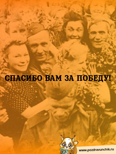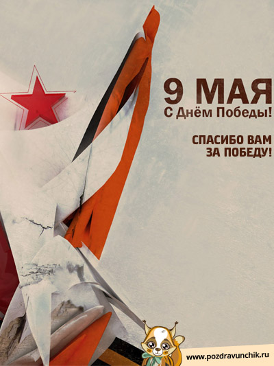 9 мая – это не только праздник Победы, это также день торжества справедливости и свободы во всем мире. Сколько наших соотечественников пожертвовало собой ради мирного будущего каждого из нас. Поэтому не стоит забывать о великом подвиге мужественных воинов, об их самоотдаче во имя победы над нацисткой Германией и патриотической любви к родине. Особенно следует почтить дорогих ветеранов, уделить им хоть чуточку своего внимания, выразить благодарность и уважение. Праздничный парад в этот день объединяет тысячи людей разных возрастов и социальных положений в едином патриотическом порыве. Помимо этого, каждый из нас должен также позаботься о хорошем поздравлении для своих знакомых пожилых героев. Чтобы долго не мучиться в поисках подходящего поздравления, воспользуйтесь рубрикой открыток на 9 мая, размещенной на нашем сайте. Трогательные изображения помогут вам выразить глубокое чувство признательности к ветеранам.