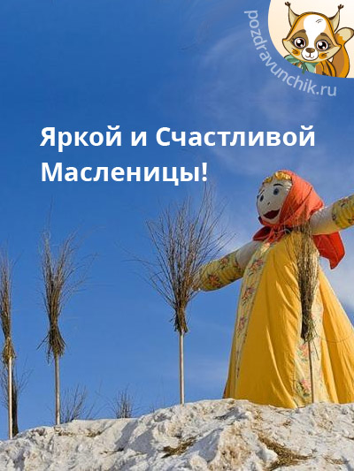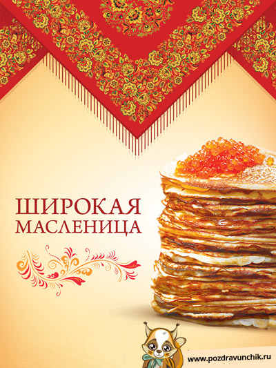 Масленица – это праздник, который учредили еще наши далекие предки. Он был посвящен весеннему солнцестоянию, периоду, когда природа готовилась к обновлению и вступлению в новый цикл. В это время славяне собирались на лужайке, жгли чучело зимы, танцевали, пели, ликовали в ожидании весны, угощали друг друга блинами. Сегодня, как и много лет назад, русский народ обожает Масленицу - за веселье и за масляные пиры. Основным угощением Масленицы являются блины, мед и топленое масло. Почему блины? Уж очень похожи круглые зарумянившиеся «полотна» из теста на весеннее солнышко. Поздравить друзей, коллег, членов семьи с Масленицей красивой открыткой – это здорово. Выбрать открытку на Масленицу по душе, можно зайдя на сайт Поздравунчик.ру. С Масленицей вас, дорогие посетители нашего интернет-ресурса! Поздравунчик.ру желает вам хорошего настроения и приятного времяпрепровождения!